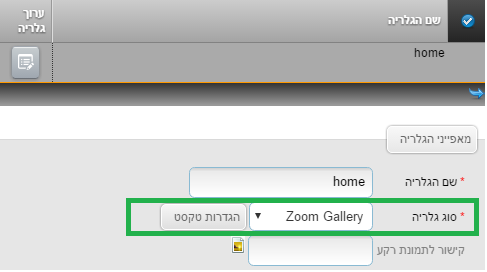 בחירת הגלריה + כניסה למסך הגדרות הטקסט